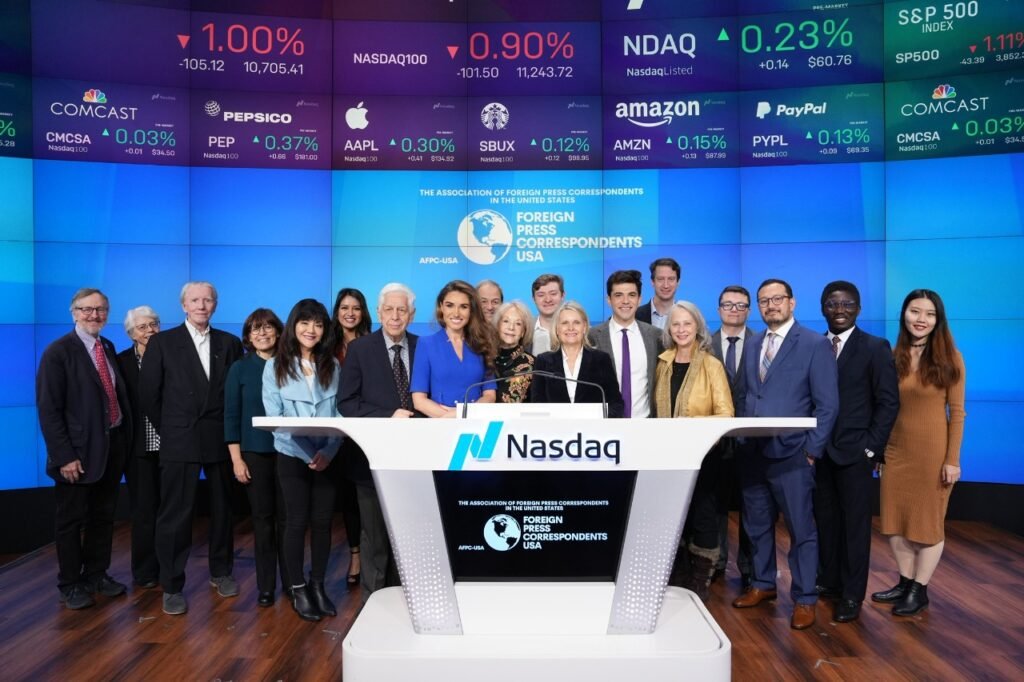 A Associação de Correspondentes da Imprensa Estrangeira nos Estados Unidos, a principal organização que atende jornalistas estrangeiros na América do Norte, visitou o Nasdaq MarketSite na Times Square. Em homenagem à ocasião, Nancy Prager Kamel, Presidente do Conselho, Thanos Dimadis, Diretor Executivo da Associação, e um seleto grupo de correspondentes estrangeiros e membros do Conselho tocaram o Sino de Abertura. O Jornal A Voz da Cidade teve o privilégio de ter o correspondente internacional Silas Ávila Junior presente na cerimônia de abertura da NASDAQ.